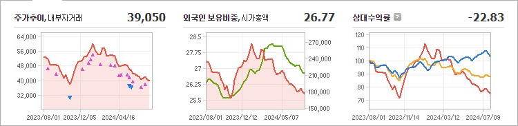 카카오는 한국의 대표적인 IT 기업으로, 다양한 온라인 플랫폼과 서비스를 제공하고 있습니다. 최근 몇 년간 카카오는 지속적인 매출 성장을 보여주고 있으며, 특히 카카오톡과 카카오게임즈의 성장이 두드러집니다. 2023년 3분기 기준으로 카카오는 안정적인 수익 구조를 유지하고 있으며, 광고와 콘텐츠 사업에서 높은 매출을 기록하고 있습니다. 회사의 총 자산은 증가세를 보이고 있으며, 이는 신규 사업 투자와 인수합병에 따른 결과로 해석됩니다. 카카오는 또한 부채 비율이 상대적으로 낮아 재무 안정성이 높습니다. 그러나 최근 글로벌 경제 불확실성과 경쟁 심화로 인해 일부 사업 부문의 성장세가 둔화되고 있습니다. 카카오는 R&D 투자에 적극적으로 나서고 있으며, 인공지능 및 블록체인 분야에서도 사업 확장을 모색하고 있습니다. 이러한 혁신적인 접근은 장기적인 성장 가능성을 높이는 데 기여하고 있습니다. 주가는 변동성이 있지만, 전반적으로 긍정적인 시장 전망을 반영하고 있습니다. 카카오는 앞으로도 다양한 사업 포트폴리오를 통해 지속 가능한 성장을 추구할 계획입니다.
